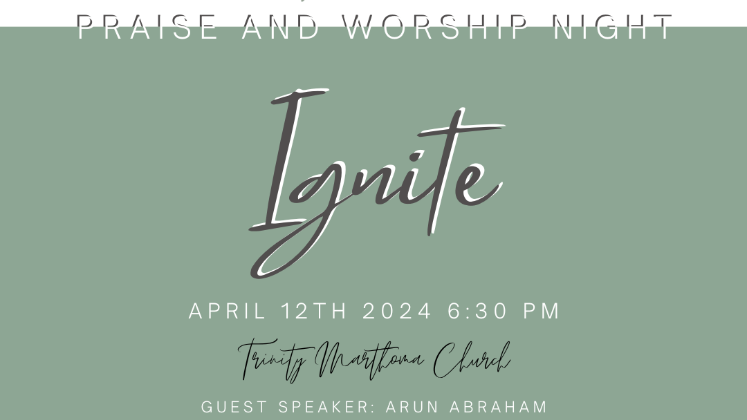 Join us at IMC for our combined event called Ignite! It will be a night filled with praise and worship, a message from Arun Abraham, and fun!