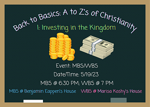 Hi gals! Come out and join your fellow YF ladies for WBS! We’ll be talking about “investing in the Kingdom” with a Biblical perspective on finances, wealth, and charity. Bring a friend for an evening of studying from the Word, fellowship, & fun!